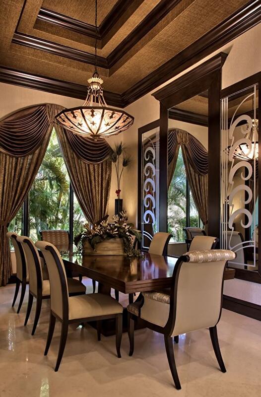 Подбирая детали интерьера столовой класса люкс, важно добиться гармонии сочетания этих деталей. Каждая мелочь должна четко вписываться в общую картину. Это касается и отделочных материалов, и стилистики, и даже столового белья и посуды.
