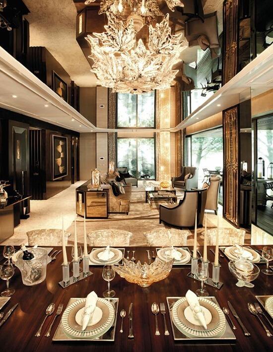 Не последнюю роль в создании элитного интерьера столовой играет свет : красивые текстуры мебели, декора и посуды требуют правильного освещения. Ощущение «глянца» создается отчасти благодаря игре света на блестящих поверхностях, стекле, металлических элементах.