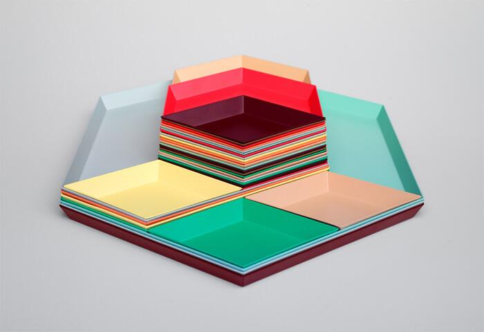 Набор Kaleido — это набор разногабаритных квадратных тарелок, которые легко собираются воедино. Такой конструктор, разработанный для бренда Hay шведским дизайнером Кларой фон Цвайгберг (Clara Von Zweigbergk ), компактен в хранении и может выстраиваться в геометрические узоры, создавая тем самым забавную сервировку.