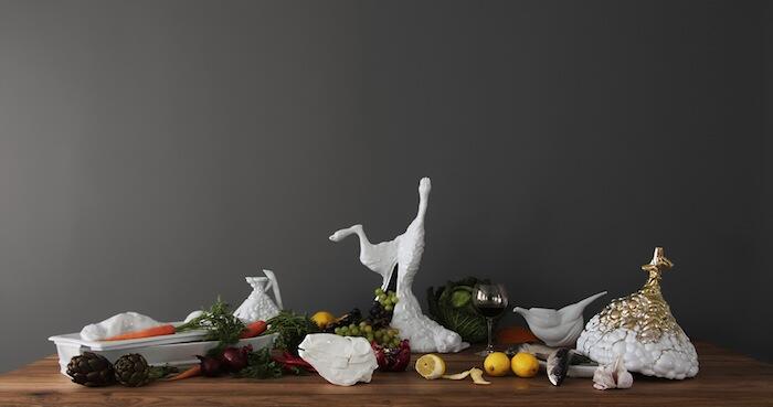 Дизайнер украинского происхождения Мария Волохова , проживающая в Берлине, создала коллекцию фарфора Still Life Stories. Гротескные образы воплотились в совсем нехарактерных для кухни предметах — вазе для фруктов в виде разделанного кролика, овечьем черепе для сервировки, чайнике, напоминающем утонченность и извилистость тонкого кишечника, и др.