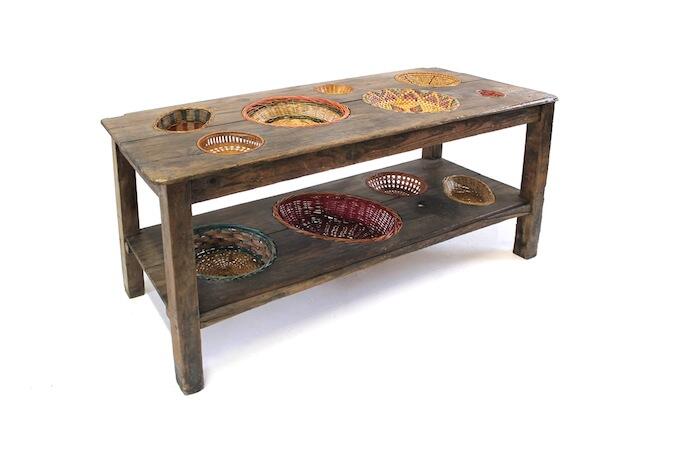 В основу проекта стола-«корзины» (Basket Table ) лег самый обычный деревянный стол, в который итальянский дизайнер Маркантонио Малерба (Marcantonio Raimondi Malerba) вмонтировал тарелки.