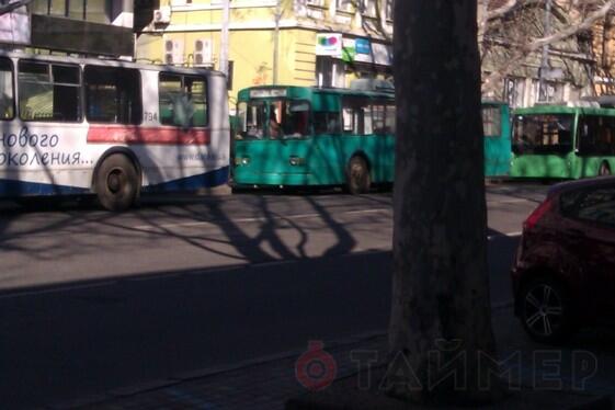 Стоит отметить, что из-за перекрытия Ришельевской на Жуковского образовалась масштабная пробка, стоит и общественный транспорт, который не может двигаться дальше по улице.