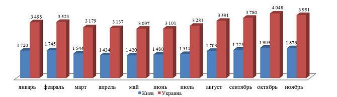 Динамика количества вакансий на ИT-рынке труда Украины и доля Киева в общем объеме в 2014 году (шт.)