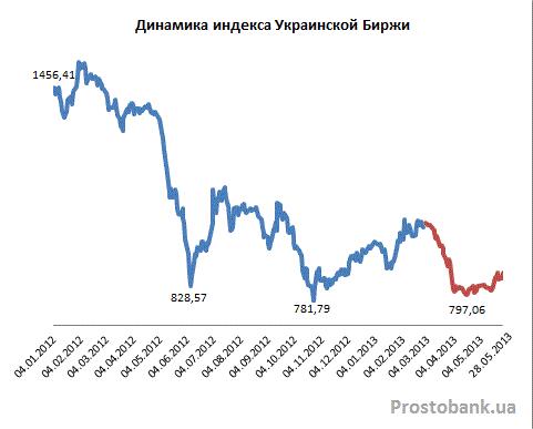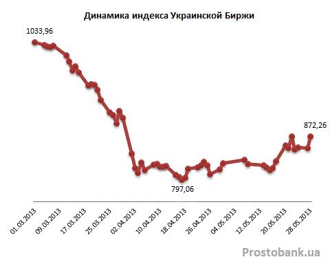 Правда, окончание мая-2013 все же привнесло ноту оптимизма: индекс Украинской Биржи практически весь май демонстрировал позитивную динамику и к концу месяца пересек отметку в 870 пунктов.