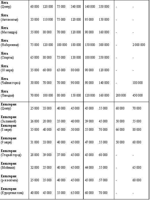 *Данные предоставлены агентствами недвижимости «Золотой ключик» , « Мультидом», « Цитадель», « Планета Крым», « Таврия»