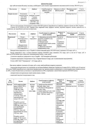 Осознавая риски сложившейся ситуации, Кабмин продлил до конца текущего года действие постановления о временном чрезвычайном положении на рынке электроэнергии. Большая вероятность, что этот документ, который действовал последние три месяца, с наступлением 2015 года также сохранит свою актуальность: новоназначенный министр энергетики и угольной промышленности Владимир Демчишин сообщил, что в пиковые периоды потребления дефицит мощности энергосистемы Украины превышает 10%, порядка 20 энергоблоков теплоэлектростанций находятся в ремонте из-за плохого технического состояния.
