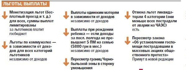 В Минфине считают, что нужна "монетизация льгот" — то есть хотят максимально урезать все общие льготы, заменив их адресными выплатами. " Государство должно обеспечить минимальный уровень соцстандартов малообеспеченным слоям населения. Отдельным категориям, например, инвалидам, следует доплачивать на лекарства, проезд. А человек сам будет определять, купит он лишнюю буханку хлеба или заплатит за билет в транспорте. Систему льгот надо пересматривать, так как это предмет для коррупции", — считает Уманский.
