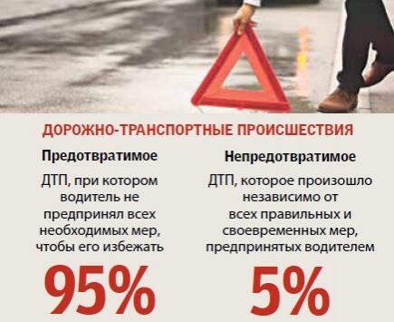 Вероятность возникновения аварии зависит от четырех факторов: от водителя (его навыков, умения, стиля езды), автомобиля (технических возможностей и состояния), дороги (состояния полотна, инфраструктуры и организации движения) и среды (погодных условий и всего, что окружает дорогу и автомобиль). Каждый из них может стать причиной ДТП, но лишь водитель своими правильными действиями способен минимизировать влияние трех остальных факторов. Анализ причин и хода ДТП убедительно доказывает, что лишь 5—10% из них были абсолютно неотвратимыми.