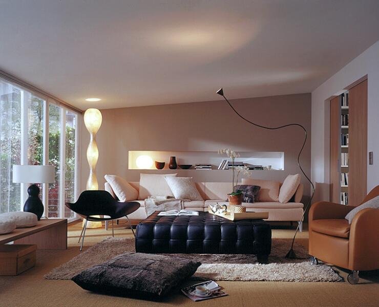 Освещение - важный элемент современного жилого пространства, и чем его больше, тем лучше. Подсветите каждую функциональную зону, например, диван напольным торшером, кресло настольной лампой, полки потолочным точечным светом, мебель светодиодной лентой и т.д. Не покупайте светотехнику одной коллекции, пусть каждый элемент будет уникальным. Не бойтесь переборщить, света много не бывает!