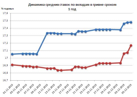 А непосредственной темой нашего обзора стало изменение ставок по депозитам украинских банков за ноябрь-2013. По данным компании «Простобанк Консалтинг», в прошедшем месяце средняя доходность депозитов немного повысилась. В частности, краткосрочные вклады в гривне «подорожали» на 0,6-0,9 процентного пункта или на 4-8% от своей прежней доходности.