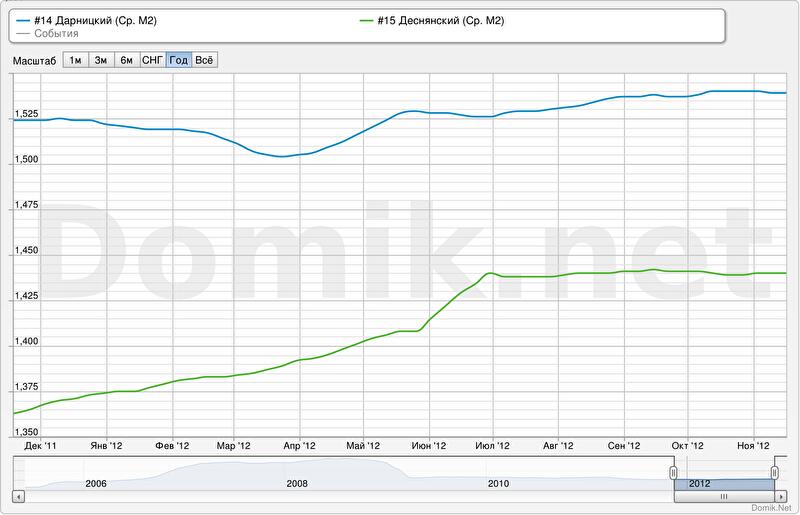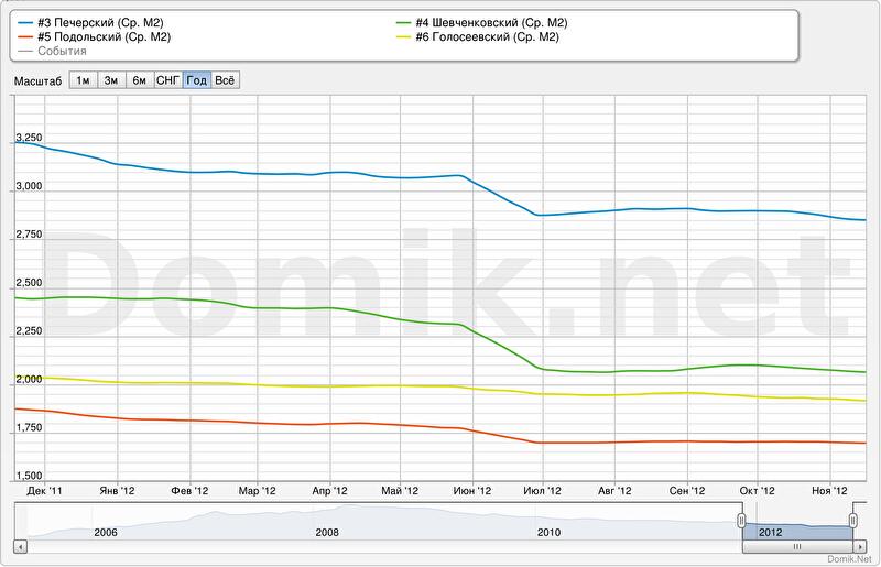 Конечно, районы Киева достаточно большие, потому данная статистика не дает полной картины: цены в разных массивах одного района могут заметно отличаться. Чтобы получить более объективную картину колебаний на рынке недвижимости столицы, ознакомьтесь с ценовыми тенденциями по жилым массивам