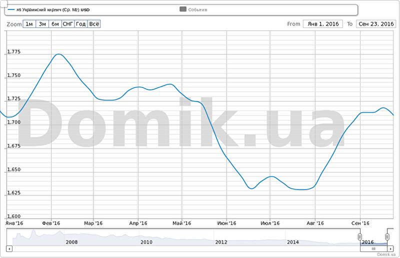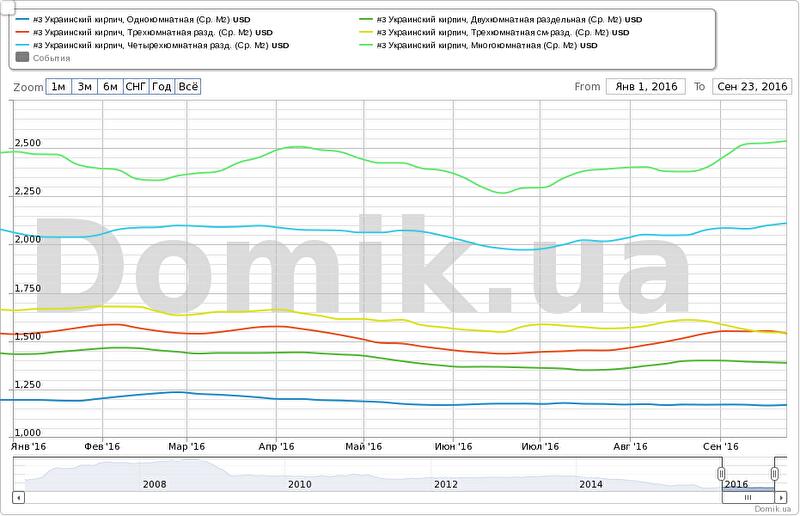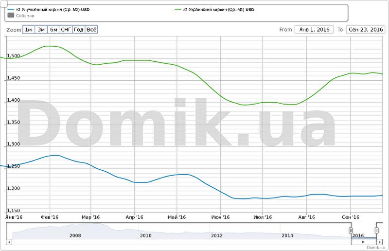 По данным портала Domik.ua , средние цены на жилье в домах типа «украинский кирпич» с начала года в долларах США снизились на 2,3% - с $1499/кв.м. на 1 января до $1464/кв.м на 23 сентября. Для сравнения, стоимость квартир в домах типа «улучшенный кирпич» с начала года снизилась на 5,3% .