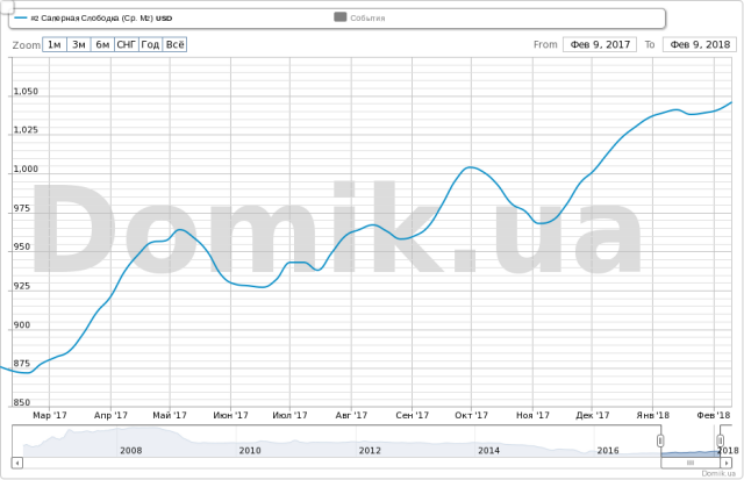 Цена на 9 февраля 2018 года, кв. м, $ США |