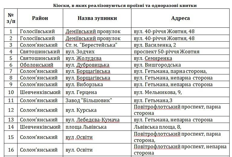 Перечень мест продажи проездных билетов: