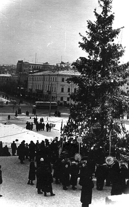Во второй половине XIX века (1950—1960 годы) в Киеве ставили уже несколько елок. Одну ставили на площади Калинина (сегодня — Майдан Незалежности), вторую — в Купеческом собрании на площади Сталина (нынешняя Европейская). Третья украшала площадку возле входа на станцию метро "Крещатик". Посмотреть на красавиц съезжались жители со всего Киева и околиц. Развлечения здесь были яркими и разнообразными: водили хороводы, смотрели праздничные представления и активно в них участвовали.