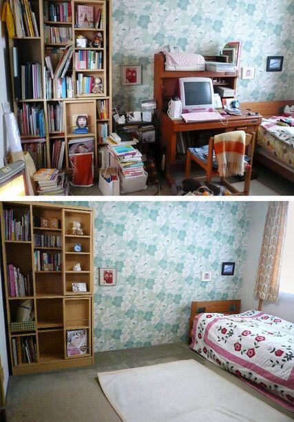 По мнению Кондо, устройства для хранения не наводят порядок, а преумножают беспорядок. Поэтому вместо покупки еще одного шкафа повесьте компактные полки: они не займут много места, но с легкостью справятся со многими вещами. Одежду, которую необязательно хранить на вешалке, сворачивайте в трубочки и кладите в ящики вертикально. Вы будете удивлены, но места в комоде станет намного больше!