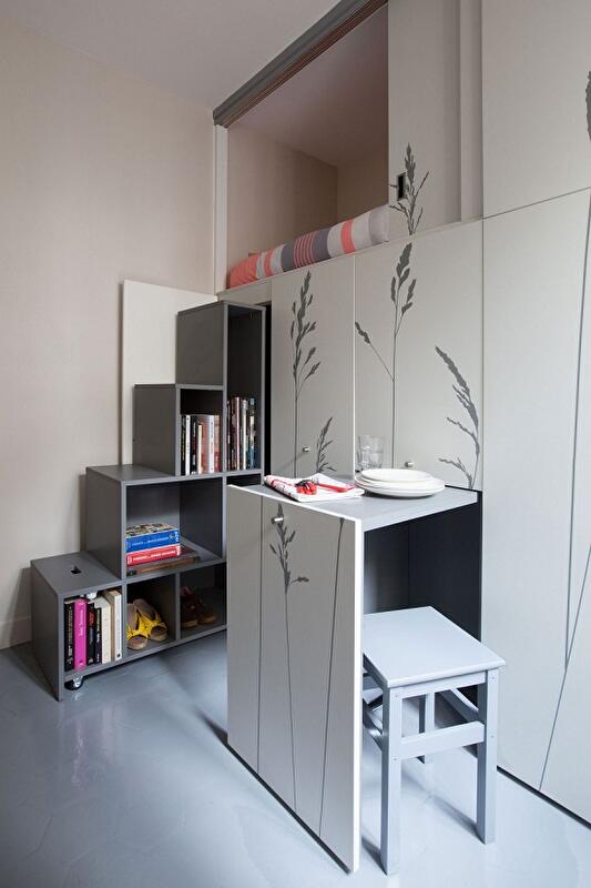 Это продемонстрировали архитекторы из студии Kitoko Studio , которые в 2014 году завершили работу над обустройством крошечной квартиры в Париже. Дизайнеры смогли наполнить стилем и уютом небольшое пространство площадью всего 8 квадратных метров. Ранее здесь располагалась комнатка для прислуги.