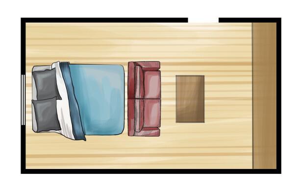 1. Поставьте шкаф вдоль узкой стены