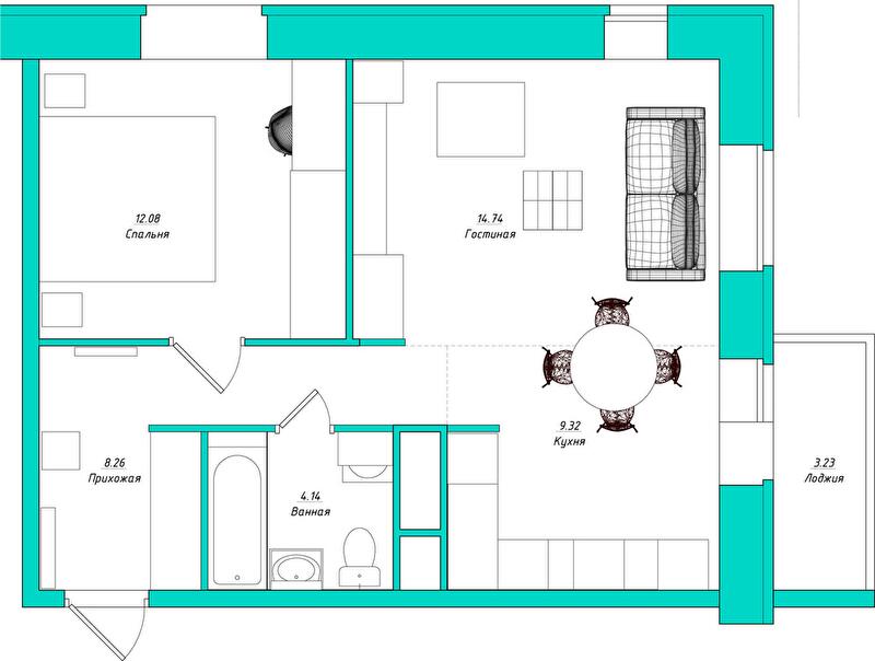 Гостиная: 14,7 кв. м