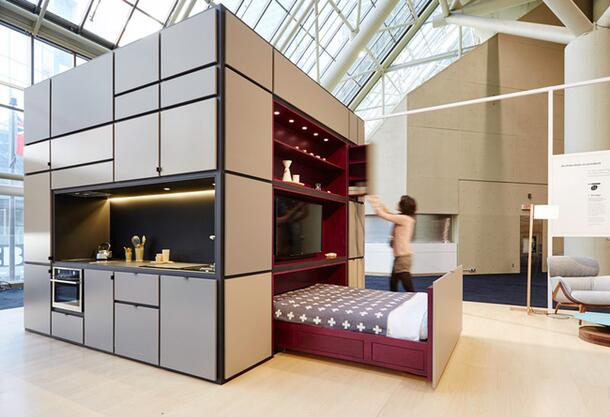 Современные тенденции предлагают нам отказаться от привычного понимания о комнатах как таковых. Больше нет спальни и гостиной, есть единое эргономичное пространство-трансформер. Современные дизайнеры предлагают отказаться от классического интерьера в пользу универсального «куба». Форма может быть самой разнообразной, важна суть – дом в доме: спальня, гостиная, рабочий кабинет и кухня в одном едином пространстве.