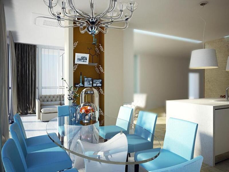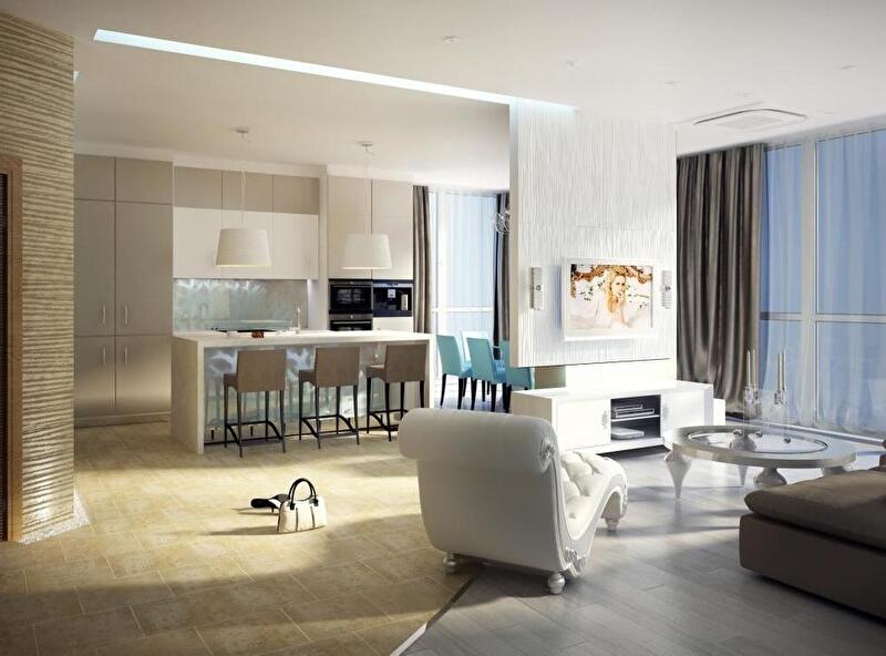 Гостиная-кухня-столовая: 55 кв. м