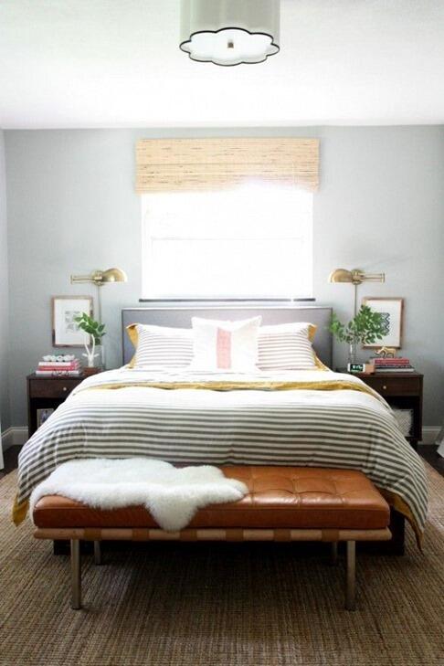 Излюбленный прием европейских дизайнеров в оформлении прикроватной зоны – это использование парных светильников по обе стороны от кровати. Прелесть такого дуэта не только в эстетике дизайна, но и в практической пользе: если одному из отдыхающих на кровати захочется спать, а второму бодрствовать, то можно включить свет только с одной стороны.