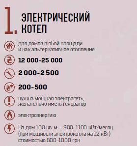 В эксплуатации все виды электрокотлов (ТЕНовый за 11–15 тыс. грн, электродный за 15–18 тыс. грн и индукционный за 25–30 тыс. грн) просты, компактны, бесшумны, не загрязняют окружающую среду и безопасны, поскольку у них нет открытого пламени. Кроме отопления, могут выполнять функцию горячего водоснабжения, правда, не сами по себе, а с помощью бойлера косвенного нагрева, который придется купить отдельно. Стоят такие бойлеры дороже обычных — 7–8 тыс. грн, установка обойдется примерно в 2–3 тыс. грн, но зато позволяют экономить электричество, так как воду нагревает в ходе своей работы котел. Чтобы сэкономить на электричестве, также лучше установить многотарифный электросчетчик. Платежка в таком случае уменьшится на 40–50%.