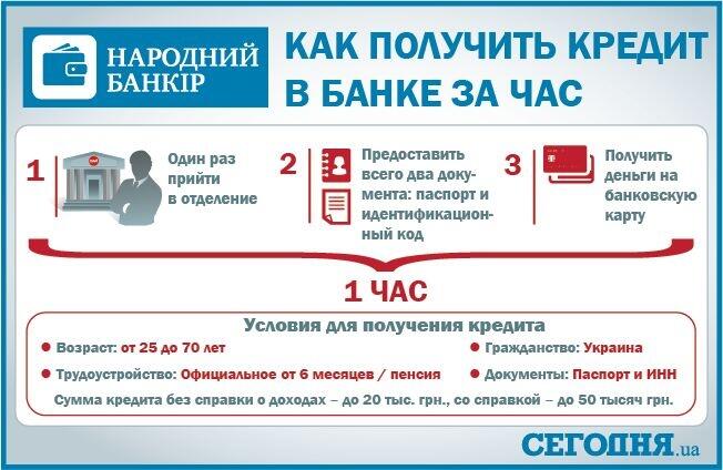 Получить средства сейчас можно за один визит в банк за один час. При оформлении кредита на сумму до 20 тысяч гривен необходимо предоставить всего лишь паспорт и код. Для кредита размером до 50 тысяч гривен необходимо предоставить справку о доходах с работы. Чтобы взять беззалоговый кредит, можно сразу прийти в отделение с документами, а можно сначала оформить заявку на сайте банка – заполнить простую форму, в которой указать имя, возраст, номер телефона и вид трудоустройства. После этого клиенту перезвонит менеджер и поможет оформить промежуточную заявку для получения кредита. Если предварительно решение банка о кредите может быть положительным, клиент выберет удобное отделение банка и время визита, чтобы прийти с паспортом и ИНН и оформить кредит.