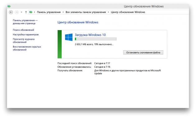 5. Вернитесь в «Центр обновления Windows» и убедитесь, что загрузка необходимых для установки Windows 10 файлов началась.