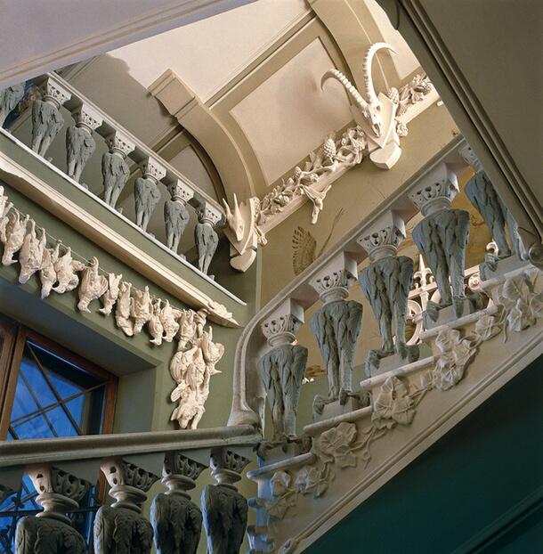 На фасаде здания размещены вымышленные существа, а внутри на стенах — только мертвые животные.
