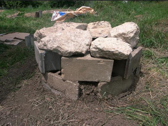 На фундамент пошли шлакоблоки, немного камней и пустые бутылки для создания рабочей поверхности на высоте около 80 см. ![]()