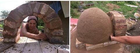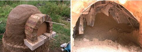Дверной проем немного узкий всего 12 см, и большую пиццу туда не поместишь, но зато какие могут там выпекаться пироги! Купол (не более чем смесь песка и глины в соотношении 3: 1) тщательно возведен поверх песчаного купола, покрытого мокрой газетой.