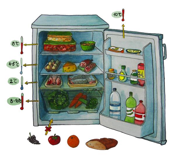 Не забывайте о том, что самое тёплое место в холодильнике это его дверца. Скоропортящееся продукты, молоко, сыры в дверце храниться не должны. Исключением может быть специальный отсек или контейнер для масла, если он имеет дополнительную защиту от тепла.