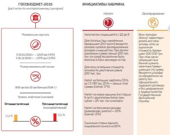 Госбюджет-2015 правительство подало в Раду вчера в шесть утра. Тремя часами позже передали Налоговый кодекс. Параллельно парламенту предложили рассмотреть 44 проекта законов — это ноу-хау Кабмина, призванное наполнить казну. Без их принятия Радой рассмотрение бюджета невозможно, поскольку именно в них содержатся многочисленные сокращения, урезания соцрасходов и налоговые инициативы.