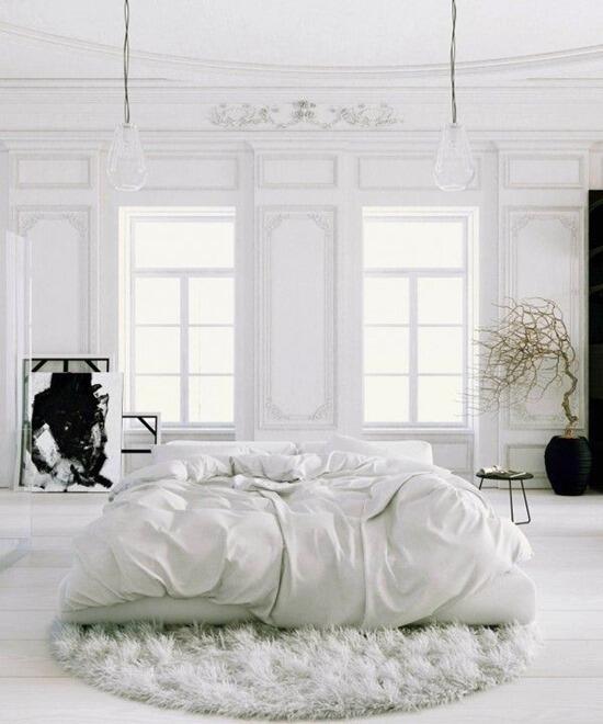 Кровать в центре комнаты