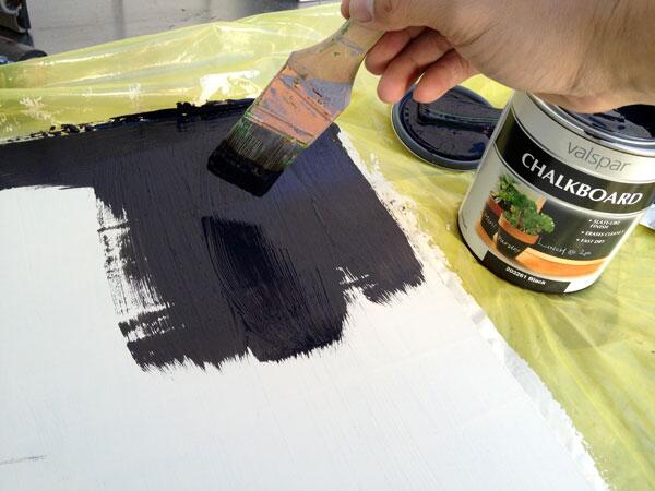 Кистью наносим специальную черную грифельную краску, можно вместо кисти использовать ролик. Нанесите краску как можно более равномерно.