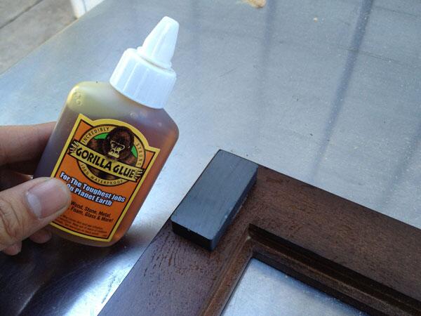 Пока выкрашенная доска сохнет, можно заняться креплением. Поскольку в нашем примере эта доска должна фиксироваться на стиральной машинке, то с обратной стороны рамки нужно приклеить два магнита. При этом следует учесть вес доски и размеры магнита.