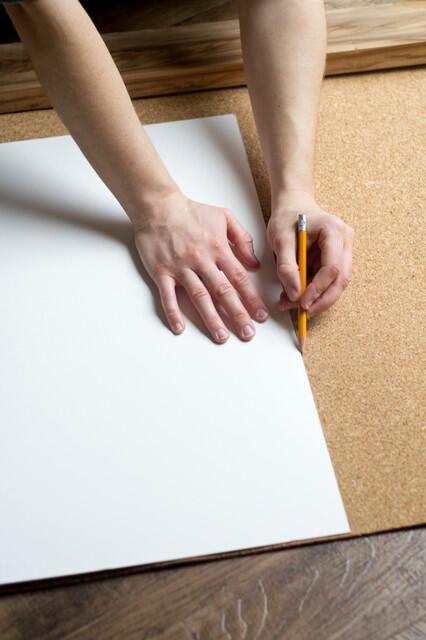 Измеряем размеры рамок, далее переносим нужные пропорции на пробковый лист и вырезаем прямоугольники указанной длины.