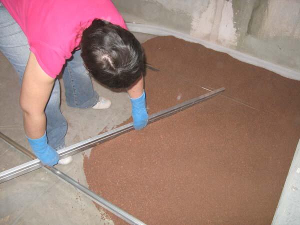 - Демонтируется прежнее покрытие и проводится оценка качества стяжки. Если она вся в трещинах, у стен виднеются зазоры или существуют другие дефекты покрытия, то с помощью раствора на цементно-песчаной основе нужно выровнять поверхность и избавиться от таких изъянов. После того как основание высохнет, необходимо убрать с него пыль при помощи веника.