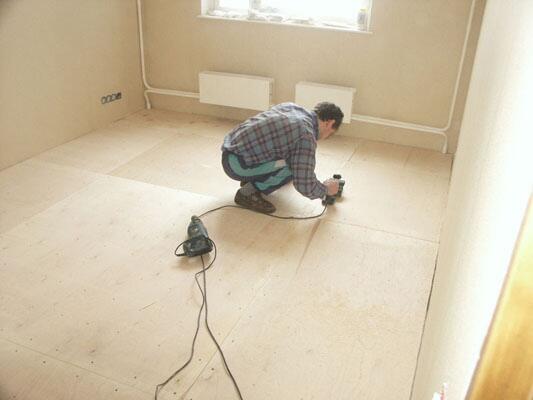 Монтаж сухой стяжки из ГВЛ должна проводиться в 2 слоя. Соединяются листы друг с другом клеем и саморезами. Образовавшиеся швы шпаклюются, а затем шлифуются. Такой пол ничем не уступает бетонному. ДСП или фанеру также укладывают в 2 слоя, хотя допускается и один. После укладки листов на них наносится гидроизоляция на битумной основе.