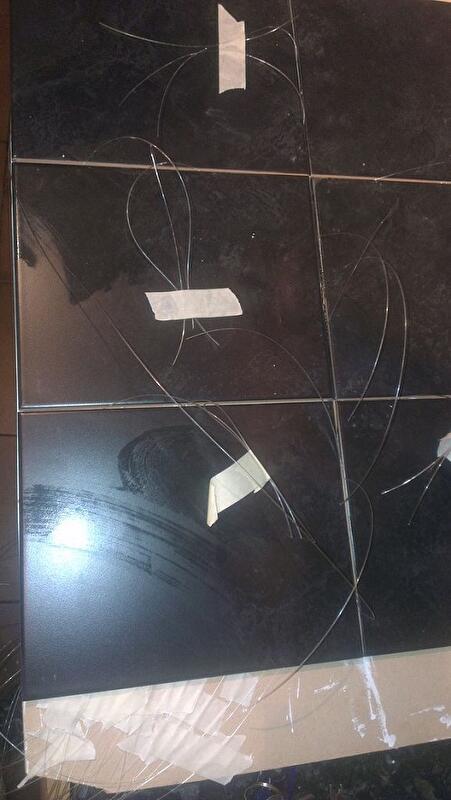 Шаг 6: Заделка швов Для заделки швов плитки, используйте хороший плоский скребок. Деликатно обработайте волокна, так как они являются хрупкими и поэтому относиться к ним нужно с осторожностью. После, обрежьте ножницами длинные концы волокна до приемлемой длины и зацементируйте. Постарайтесь, чтобы швы были аккуратными.