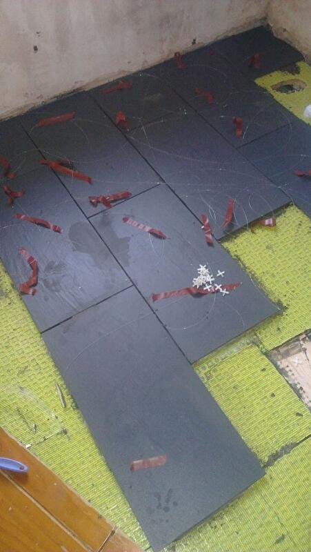 Шаг 5: Укладка плитки Поместите волокна под плитку и начните укладку. Обратите внимание на то, что волокна должны распределяться равномерно, для сохранения максимально ровной поверхности.