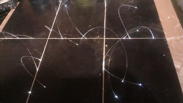 Для того, чтобы превратить волокна в «звезды», потребуется окончательная обработка волокна. Воспользуйтесь в этих целях горячим ножом, обрезая волокна как можно ближе к цементному раствору. Благодаря этой процедуре, вы не будете ощущать волокна под ногами, так как они будут достаточно коротки, прозрачны и почти незаметны.