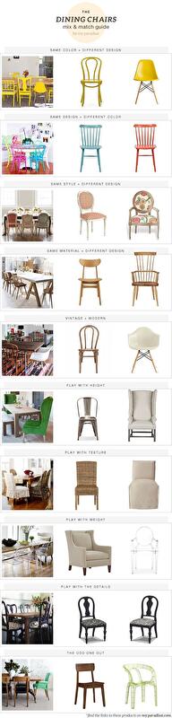 На самом деле, все намного проще, чем может показаться. Авторы блога My Paradissi поделились идеями, как правильно и легко сочетать в одном интерьере совершенно различные по стилю стулья, и даже оформили их в таблицу:
