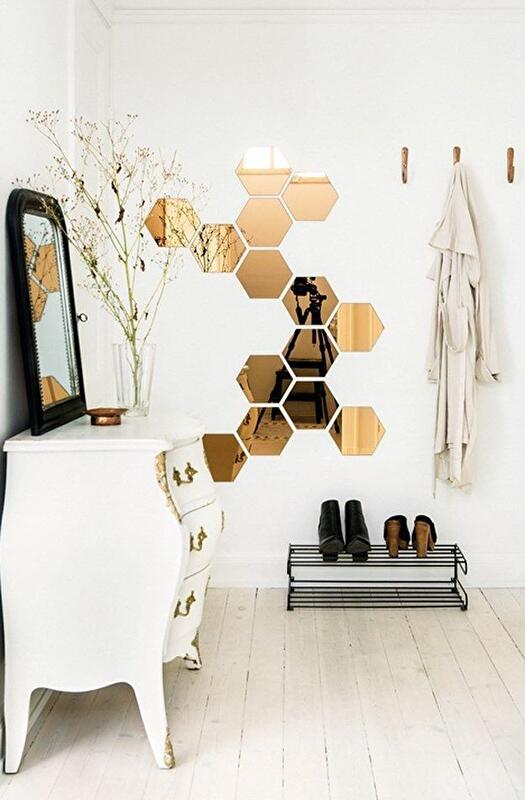 Металлические элементы – золото, серебро или бронза – всегда смотрятся в интерьере дорого и шикарно. Правда, стенные панели, мебель или металлический декор – удовольствие не из бюджетных. Есть простой выход: покрасьте деревянные, стеклянные или пластиковые поверхности акриловой краской с оттенком металла. Чтобы цвет ложился ровно, перед покраской элемент придется отполировать.