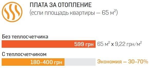 Экономия С теплосчетчиком ваша платежка в отопительный сезон уменьшится на 20–70% в зависимости от температуры за окном и вашей теплолюбивости, а потраченные деньги на сам прибор и установку (от 1500 грн) окупятся за несколько лет. Например, жительница новостройки на Осокорках Виктория Позднякова рассказала, что ее квартира расположена на солнечной стороне и сама по себе очень теплая, потому в первый же месяц отопительного сезона после установки счетчика женщине удалось сэкономить 50% от того, что она обычно платила без счетчика. Еще выгодно, что вы не будете платить за отопление, если уедете зимой, например отдыхать, и на этот период «скрутите» батареи.