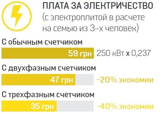 «С трехзонным счетчиком можно сэкономить до 40% от платежки за свет», — говорят в «Киевэнерго». Но, чтобы это получилось, нужно очень четко контролировать потребление электроэнергии. «Нужно точно знать время, когда действует выгодный тариф. Например, с 23:00 до 7:00 платить нужно будет только 40% от вашего обычного тарифа. А вот в остальное время нужно быть внимательными, так как с 7:00 до 8:00 утра, с 11:00 до 20:00 и с 22:00 до 23:00 электричество считается по обычному тарифу, а с 8:00 до 11:00 и с 20:00 до 22:00 тариф — в полтора раза выше обычного. То есть если вы включили стирку или бойлер в «дорогое» время, то всю экономию можете полностью нивелировать, а иногда по невнимательности даже переплатить».