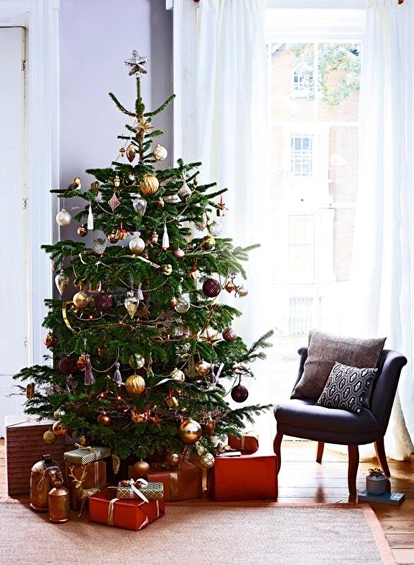 · Используйте украшения, имитирующие состаренное золото, потускневшую бронзу, латунные, оловянные и картонные наборы елочных игрушек.