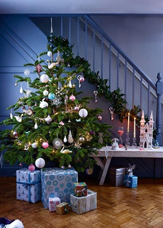 · Для придания уютного домашнего настроения купите клетчатые шары и оберните основу елки в шотландку.