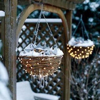 В сочетании со снегом, льдом и инеем гирлянды (особенно с теплым светом) дают ощущение совершенного волшебства! Украсить световой гирляндой можно все, что угодно, начиная от кустарников и деревьев, заканчивая фасадом дома. Даже забор сада, душ садовый с раздевалкой и хозяйственные постройки во дворе можно превратить в часть вашей зимней сказки с помощью гирлянд. Конечно, световое оборудование нужно выбирать только для наружного использования, обычные елочные украшения не подойдут.